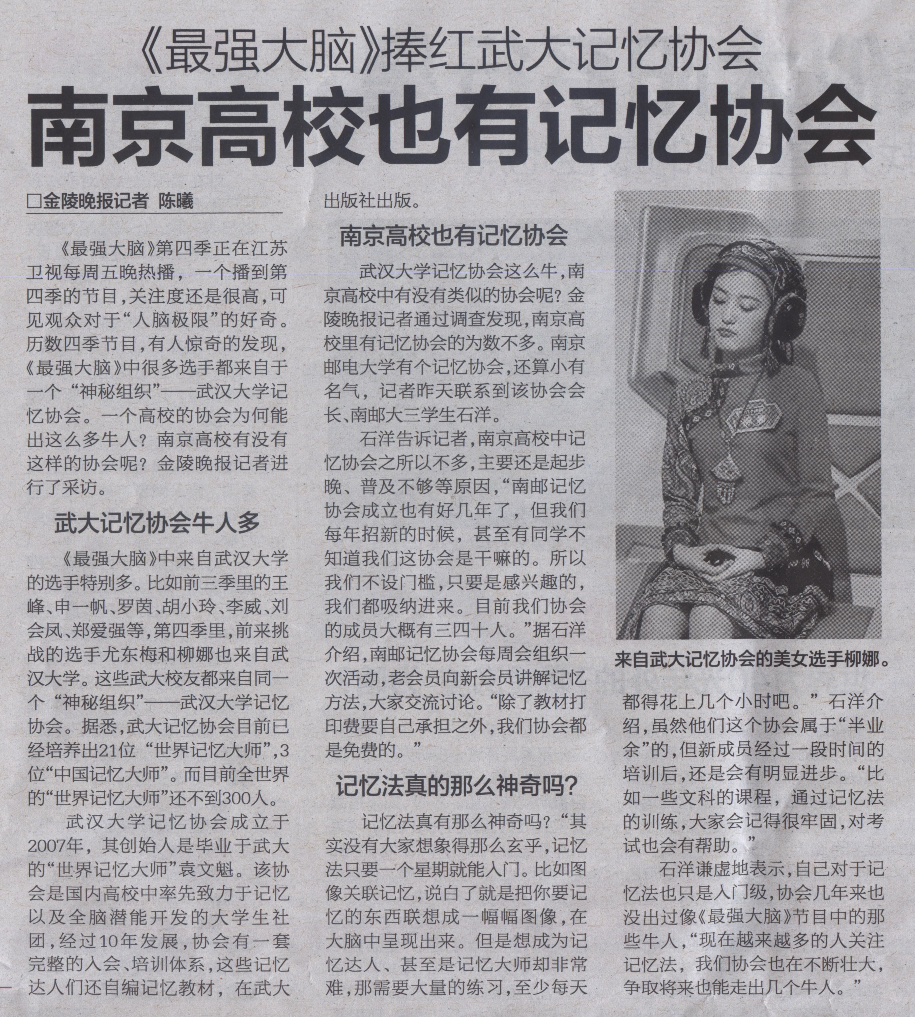【金陵晚报】南京高校也有记忆协会