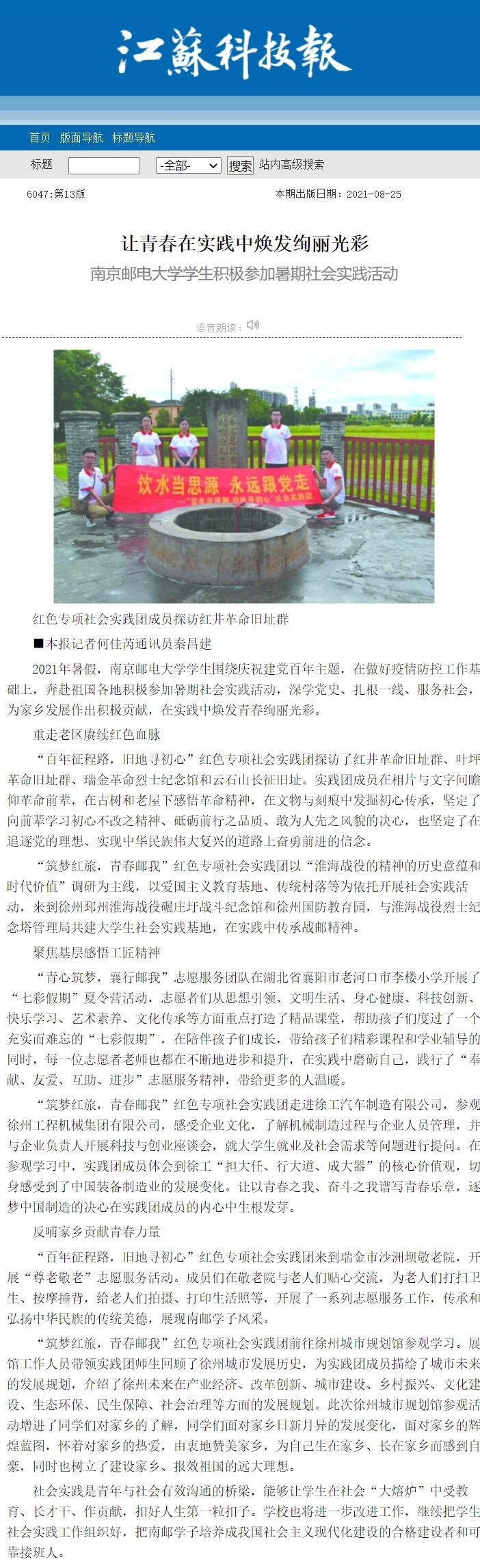 【江苏科技报】让青春在实践中焕发绚丽光彩 南京邮电大学学生积极参加暑期社会实践活动