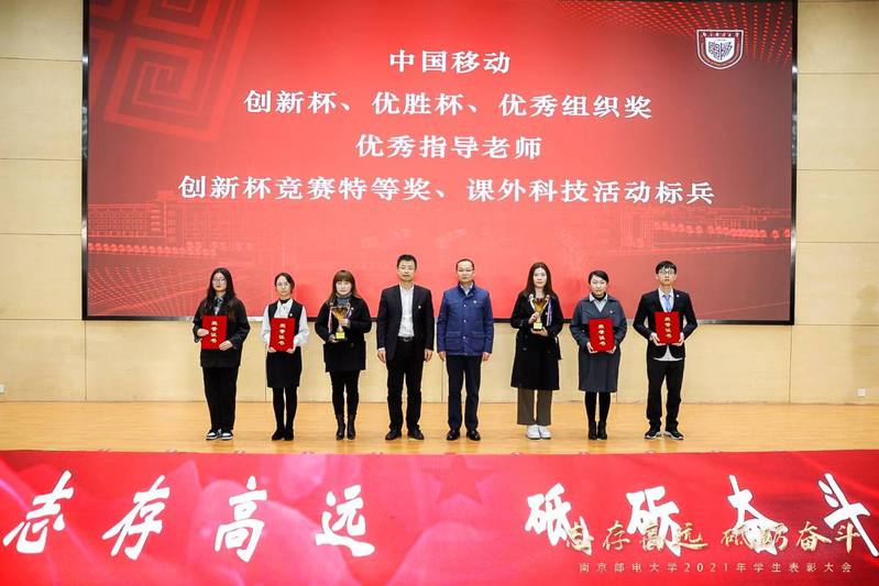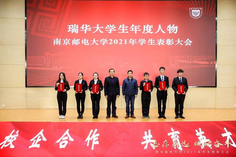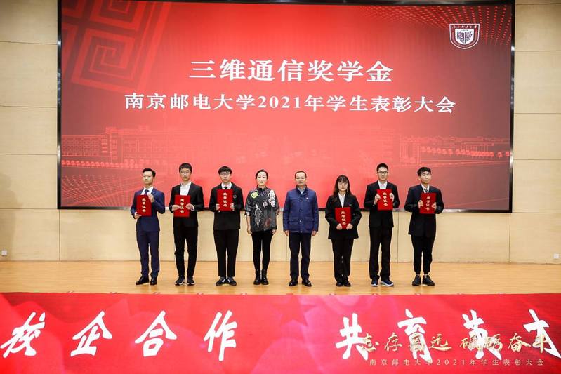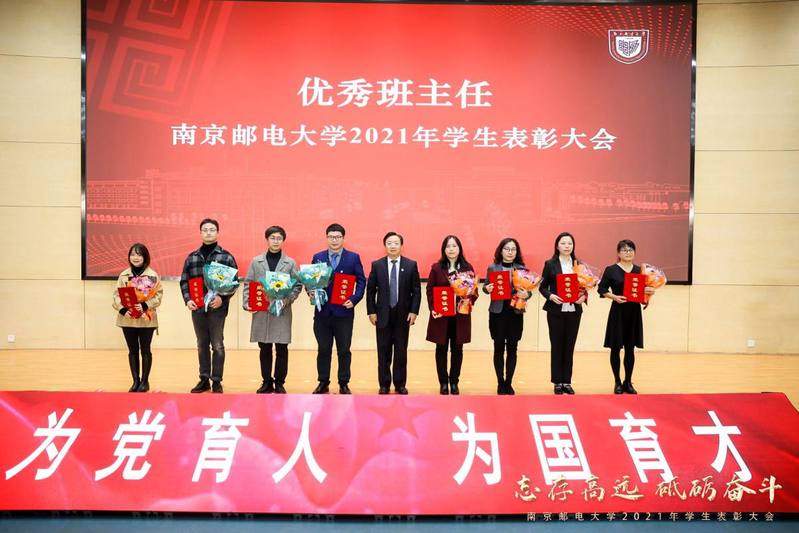 校党委书记刘陈,校党委副书记王国平,校党委常委、副校长张志华,校党委常委、纪委书记、省监委派驻南京邮电大学监察专员李子全,校党委常委、副校长荆晅,华为技术有限公司南京研究所招聘调配部部长胡皓,三维通信股份有限公司华东大区销售总监程静,长飞光纤光缆股份有限公司南京分公司经理周华兵,江苏亨通光电股份有限公司江苏省代表处市场总监宋志坚,南京烽火星空有限公司党委书记、总经理李华蓉,中国电信股份有限公司南京分公司副总经理沈振勇,江苏省瑞华慈善基金会副秘书长杨伯强,中国移动集团有限公司南京分公司党委委员、副总经理刘晓明,南京市浦口区工信局党委委员、副局长杨久芬出席大会。学校职能部门、学院相关负责人,优秀班主任代表及2021级学生代表等100余人参加大会。本次表彰大会同时开通线上图片直播,共计266258人次线上观看。