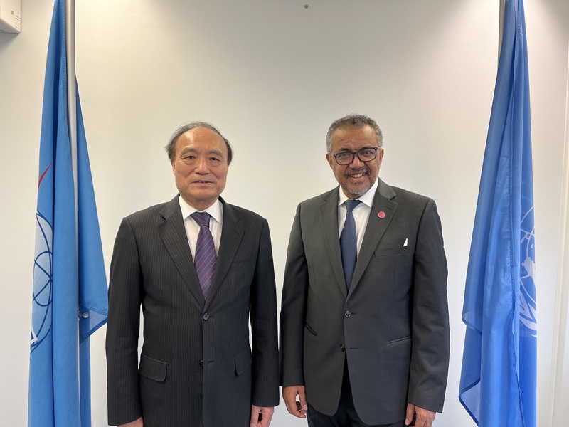 12月22日,世界卫生组织总干事谭德塞到国际电信联盟与赵厚麟话别