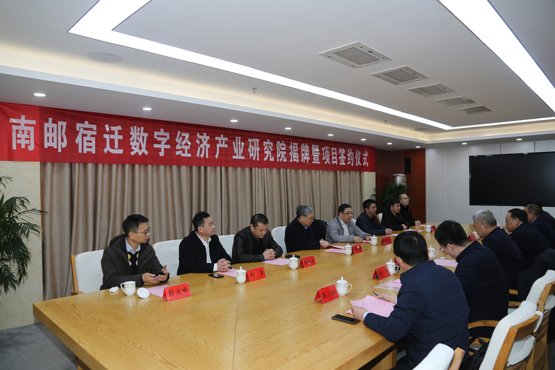 汪联辉副校长、李钦副主席共同为南邮宿迁数字经济产业研究院项目揭牌,宿迁电子商务产业园与南邮宿迁数字经济产业研究院签订共建合作协议,宿迁市民政局与南京邮电大学边缘智能研究院签订战略合作协议。