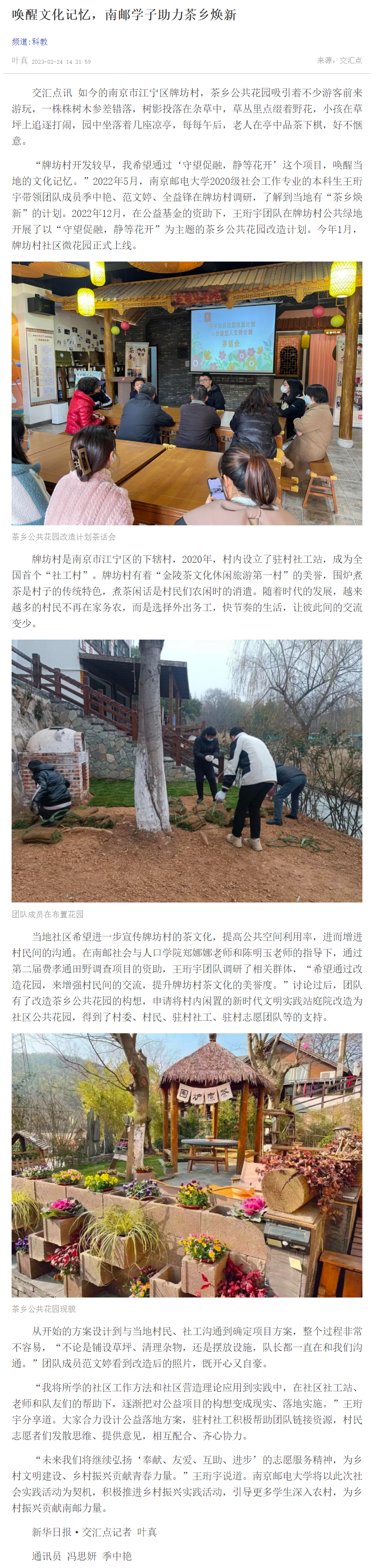 【新华日报客户端】唤醒文化记忆,南邮学子助力茶乡焕新