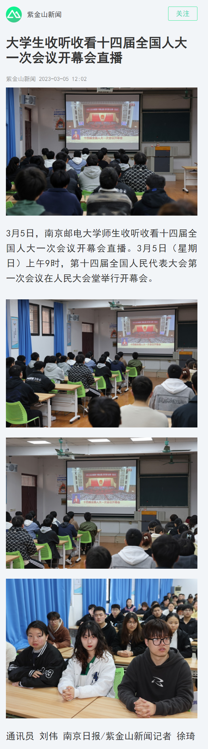 【南京日报客户端】大学生收听收看十四届全国人大一次会议开幕会直播
