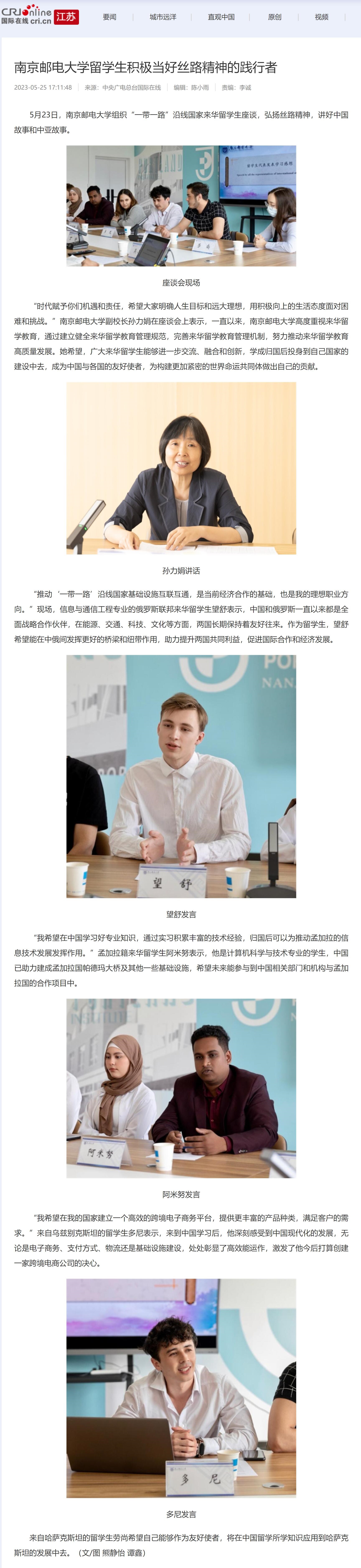 【中央广电总台国际在线】南京邮电大学留学生积极当好丝路精神的践行者