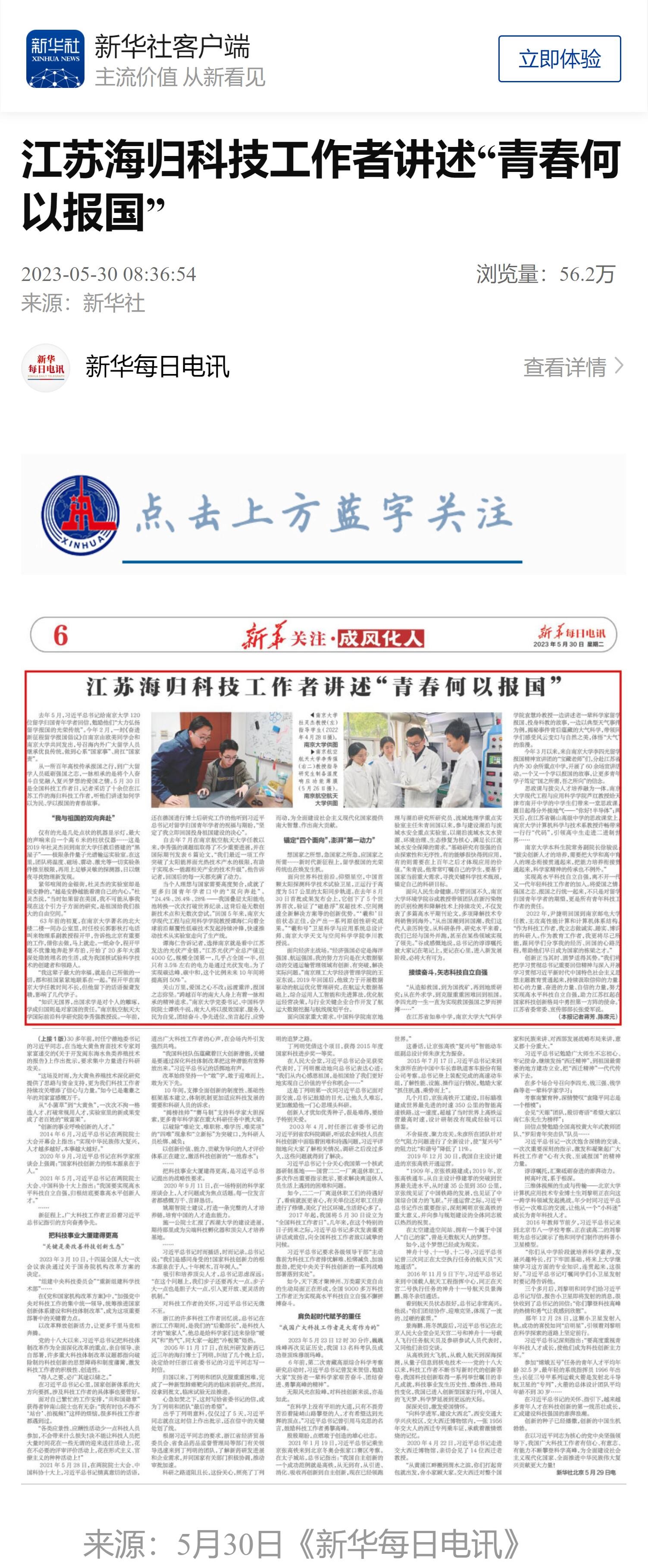 【新华每日电讯】江苏海归科技工作者讲述“青春何以报国”