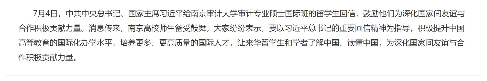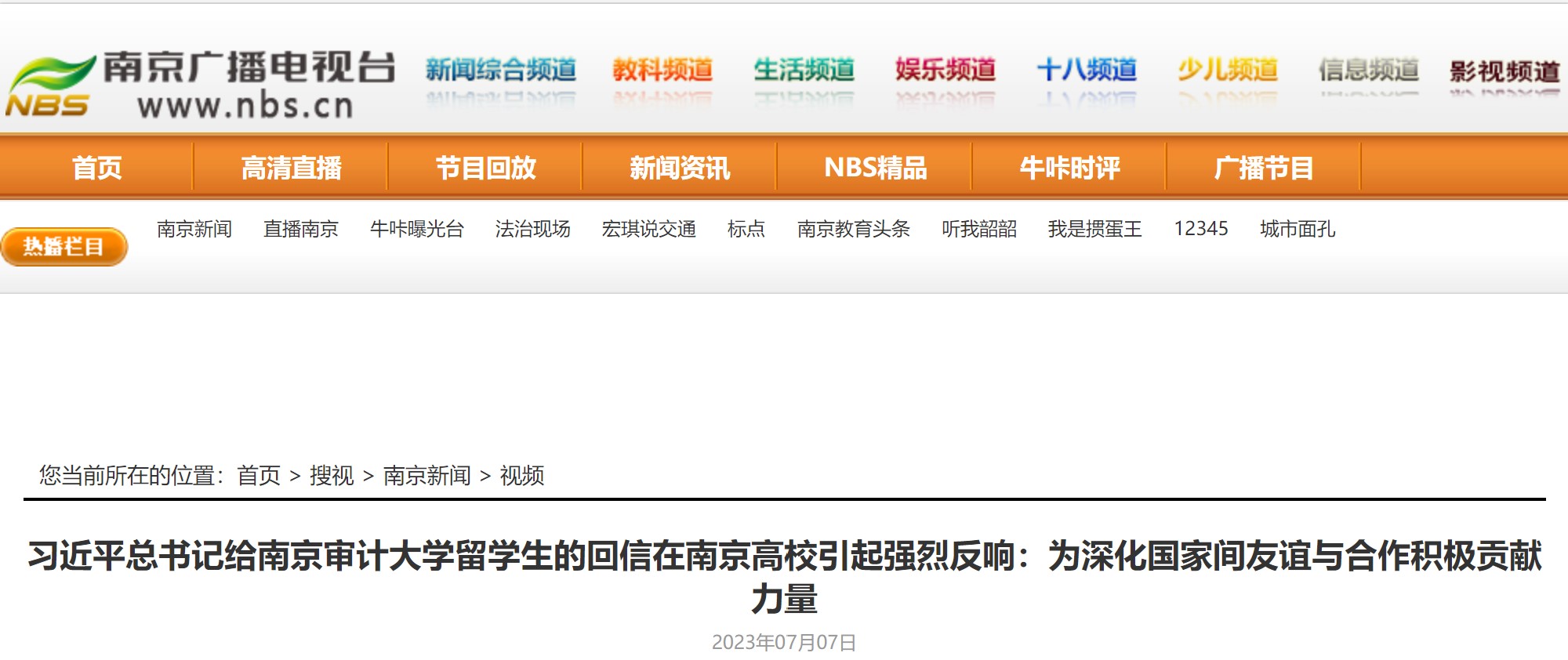 【南京广播电视台】习近平总书记给南京审计大学留学生的回信在南京高校引起强烈反响:为深化国家间友谊与合作积极贡献力量