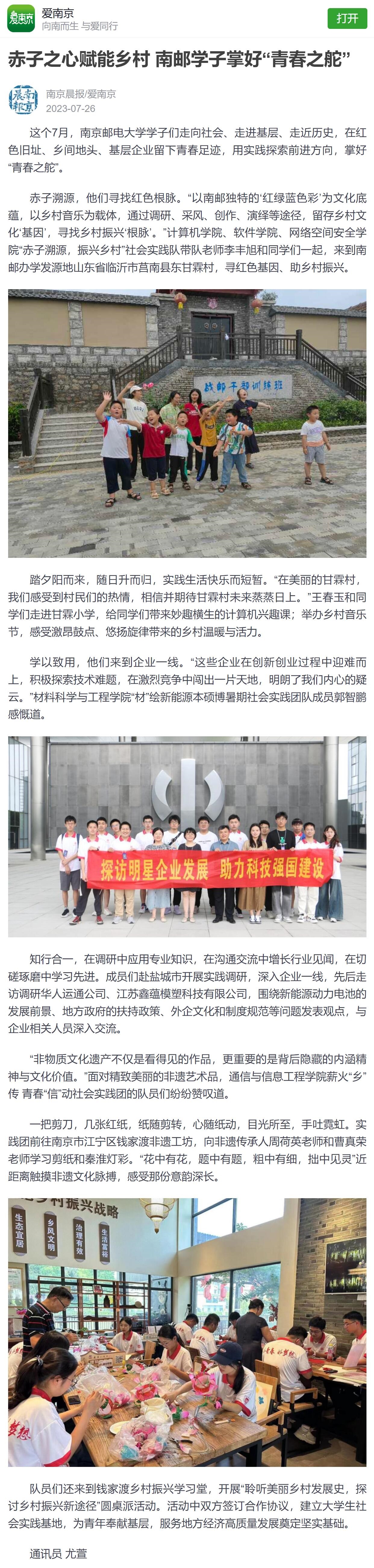 【南京晨报客户端】赤子之心赋能乡村 南邮学子掌好“青春之舵”