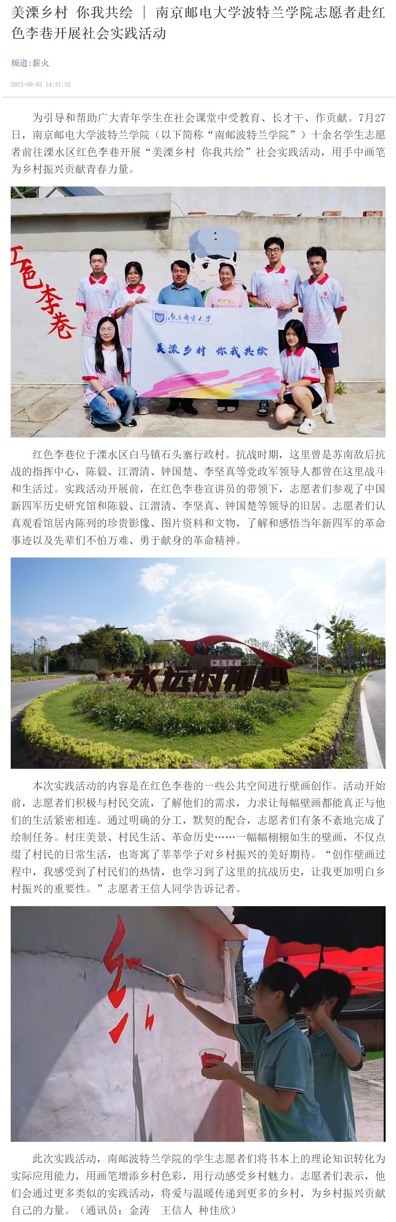 【新华日报客户端】南京邮电大学波特兰学院志愿者赴红色李巷开展社会实践活动