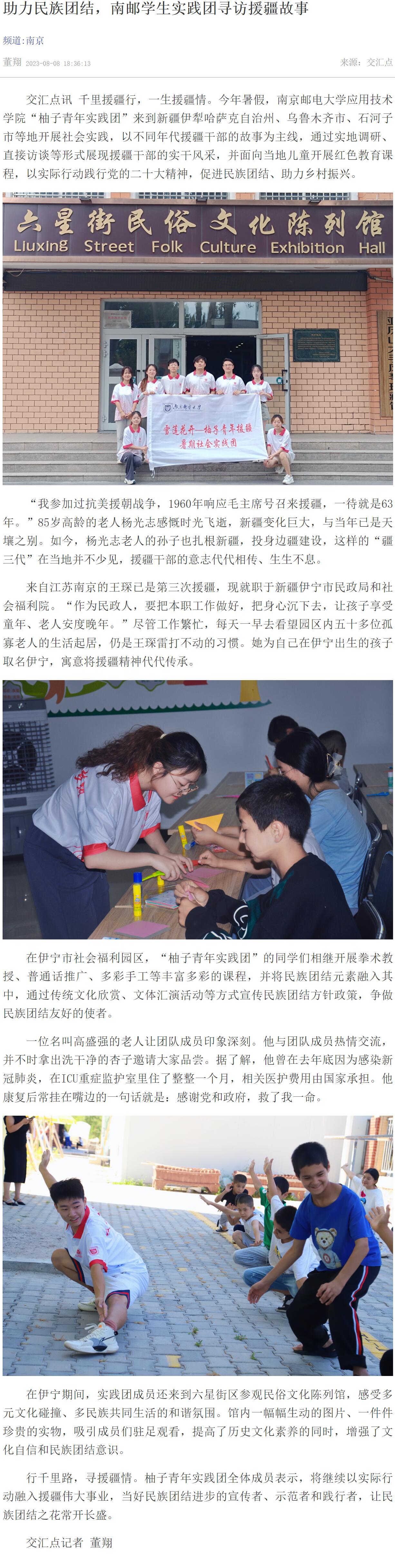 【新华日报客户端】助力民族团结,南邮学生实践团寻访援疆故事