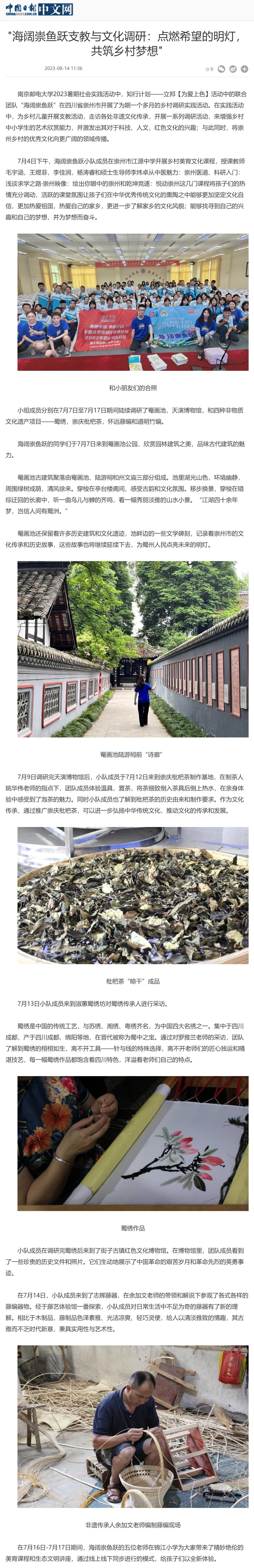 【中国日报客户端】"海阔崇鱼跃支教与文化调研:点燃希望的明灯,共筑乡村梦想"