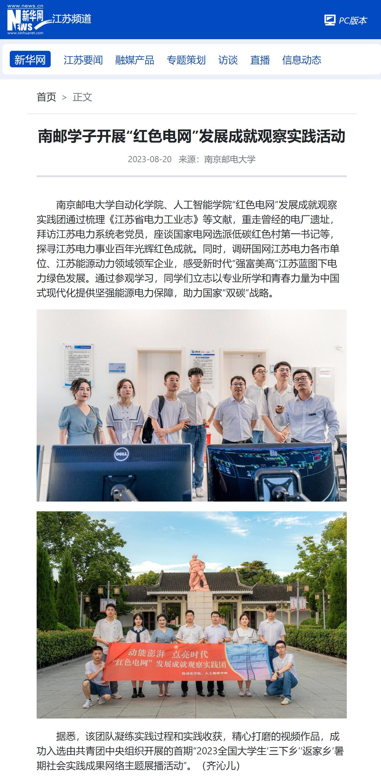 【新华网】南邮学子开展“红色电网”发展成就观察实践活动