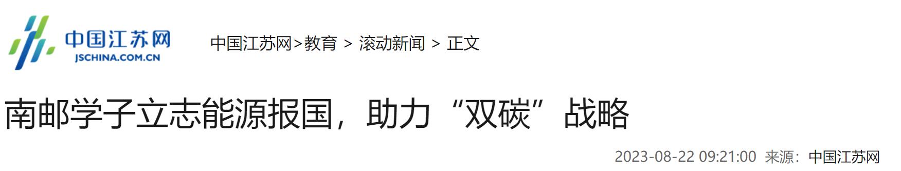 【中国江苏网】南邮学子立志能源报国,助力“双碳”战略
