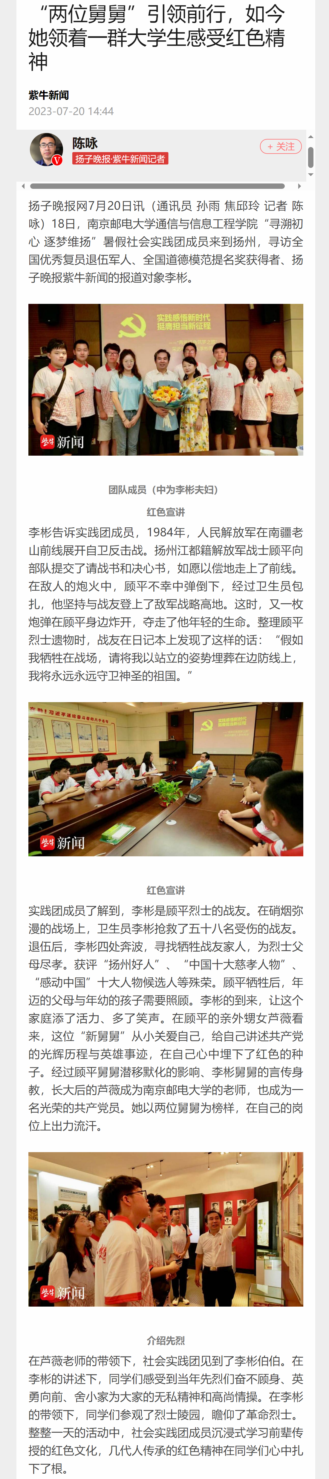 【扬子晚报客户端】“两位舅舅”引领前行,如今她领着一群大学生感受红色精神