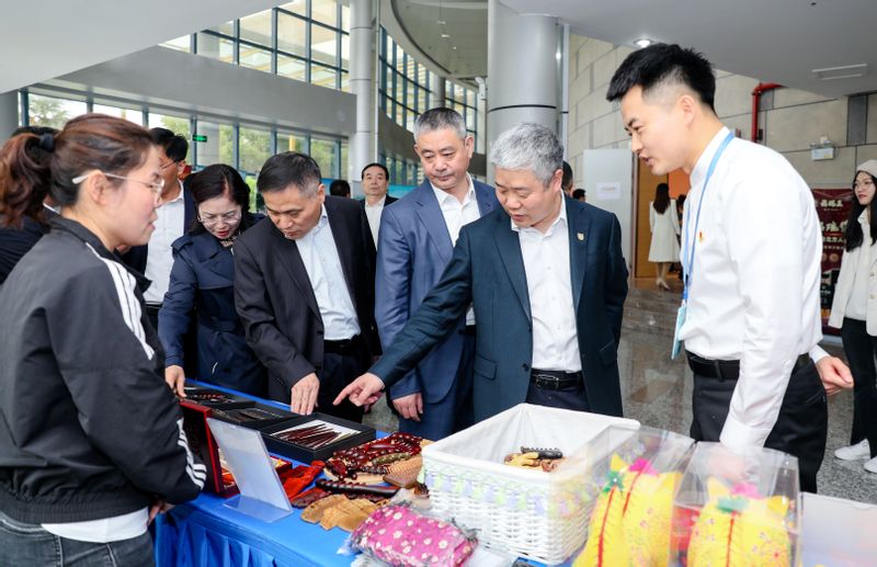 会前,校地领导共同参观了南邮校史馆、莒南农副产品和非遗成果。