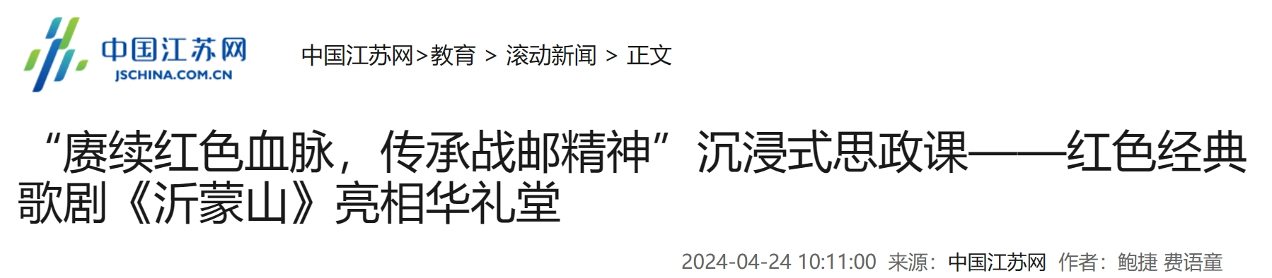 【中国江苏网】“赓续红色血脉,传承战邮精神”沉浸式思政课——红色经典歌剧《沂蒙山》亮相华礼堂