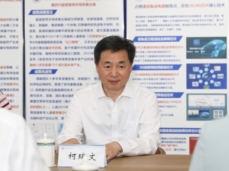 6月13日下午,我校1981级校友,中国电信集团党组书记、董事长柯瑞文回到母校调研交流。校党委书记郭宇锋,校长叶美兰,校党委常委、副校长王友国,校党委常委、副校长刘青山,校党委常委、副校长谢平陪同调研,双方在甘霖榭座谈。