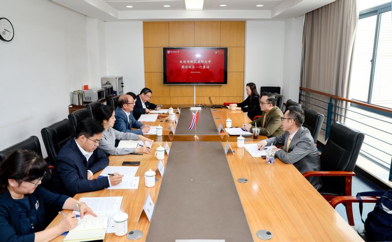 10月28日下午,泰国西那瓦国际大学校长周非、副校长魏三吉访问南邮,我校党委常委、副校长王友国出席座谈交流会。
