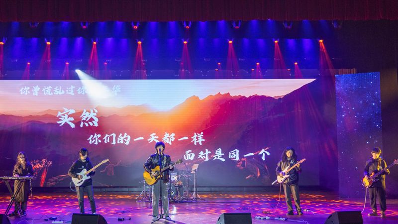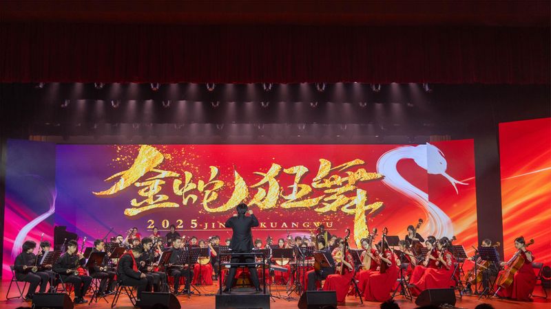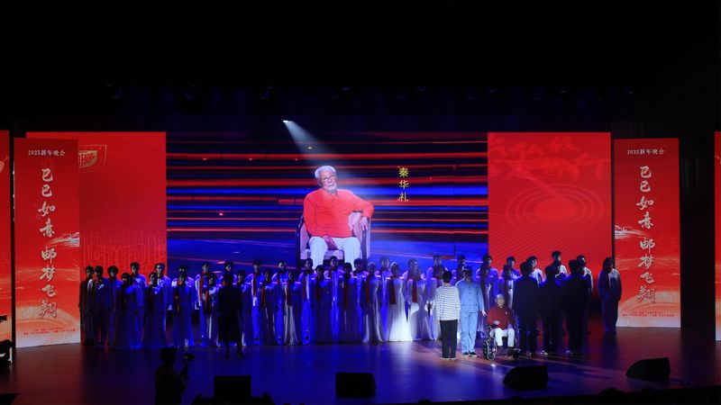 新年晚会以铿锵昂扬的新派龙狮秀《龙腾华夏》开场,气势磅礴的交响乐《激情燃烧的岁月》激发了学子的家国情怀,原创朗诵《这是一张怎样的脸》歌颂了校友徐六保将青春与热血奉献给祖国边防事业的感人事迹,原创合唱《青春燃烧的火种》等作品展现了学子们青春似火的蓬勃力量,舞蹈《石榴花开》勾勒出56个民族像石榴籽般凝心聚力、团结友爱的美好画卷,摇滚乐队带来的《像梦一样自由》等歌曲展现了青年们在充满诗意与自由的狂野中努力奔跑的模样。
