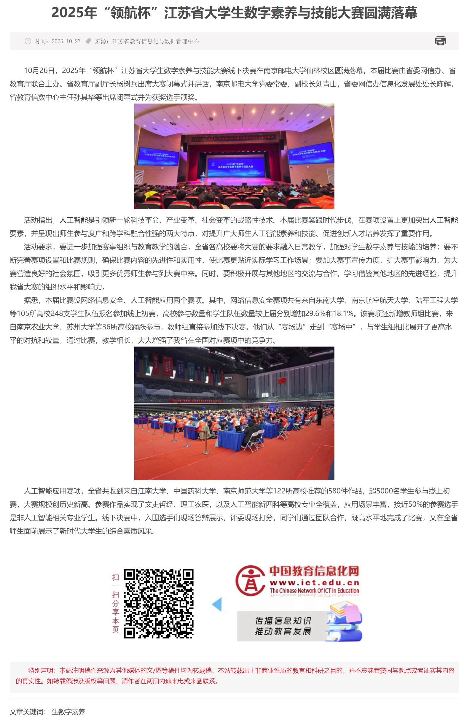 【中国教育信息化网】2025年“领航杯”江苏省大学生数字素养与技能大赛圆满落幕