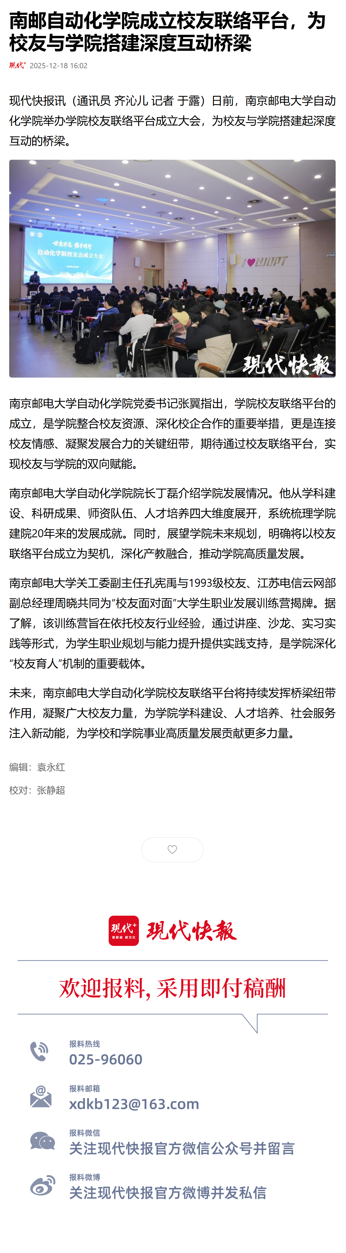 【现代快报客户端】南邮自动化学院成立校友联络平台,为校友与学院搭建深度互动桥梁