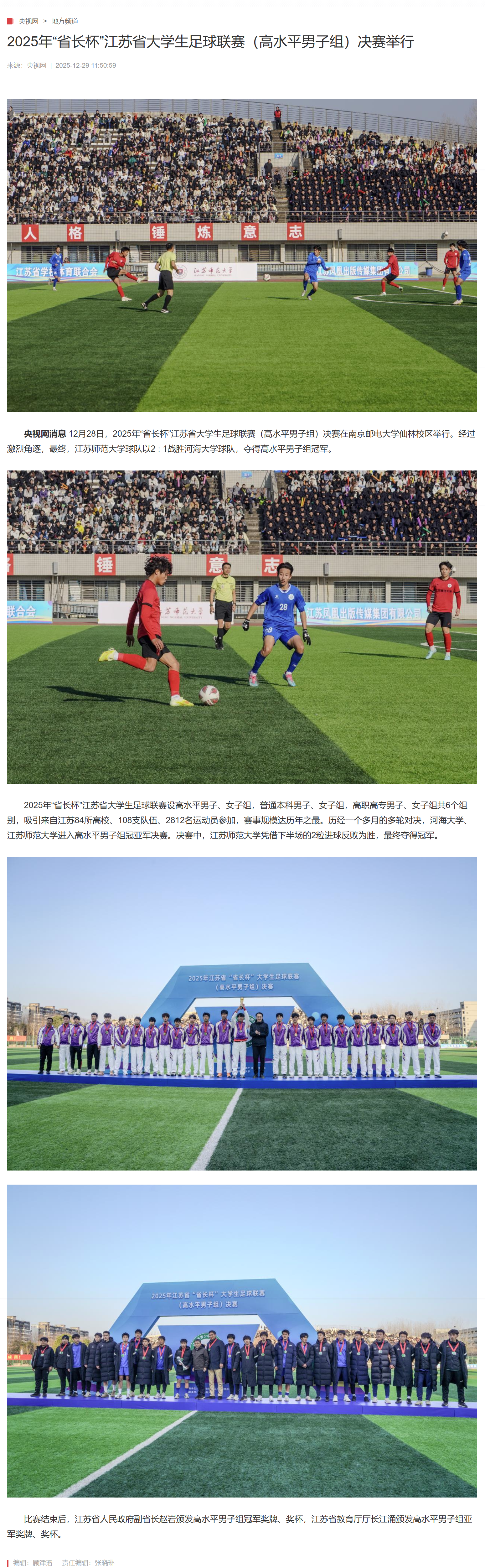 【央视网】2025年“省长杯”江苏省大学生足球联赛(高水平男子组)决赛举行