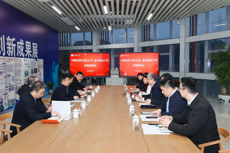 1月5日下午,中国电信江苏分公司党委书记、总经理彭鹏,党委副书记、副总经理肖江浩等到访南京邮电大学。双方在仙林校区甘霖榭举行交流座谈会,校党委书记郭宇锋,校长叶美兰,校党委常委、副校长肖甫出席座谈会。