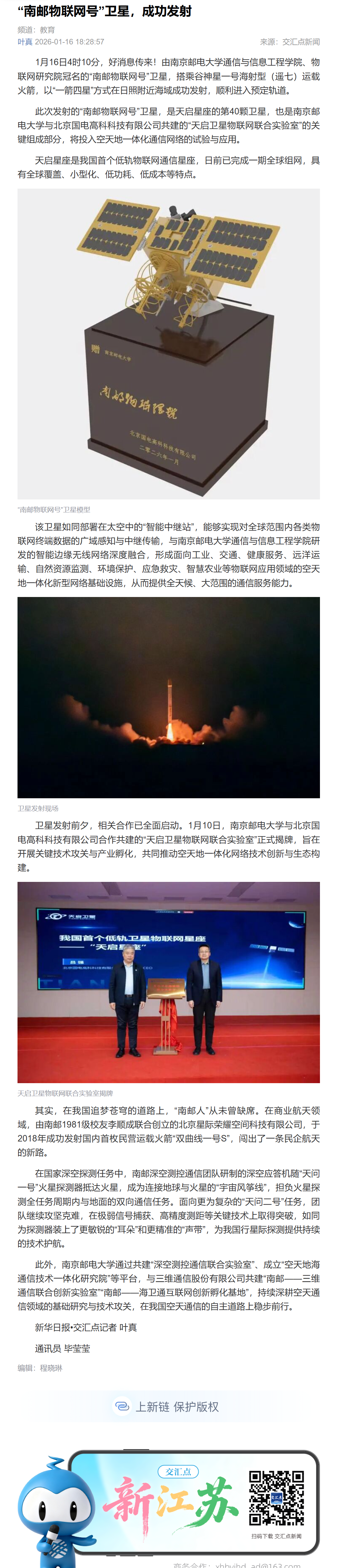 【新华日报客户端】“南邮物联网号”卫星,成功发射