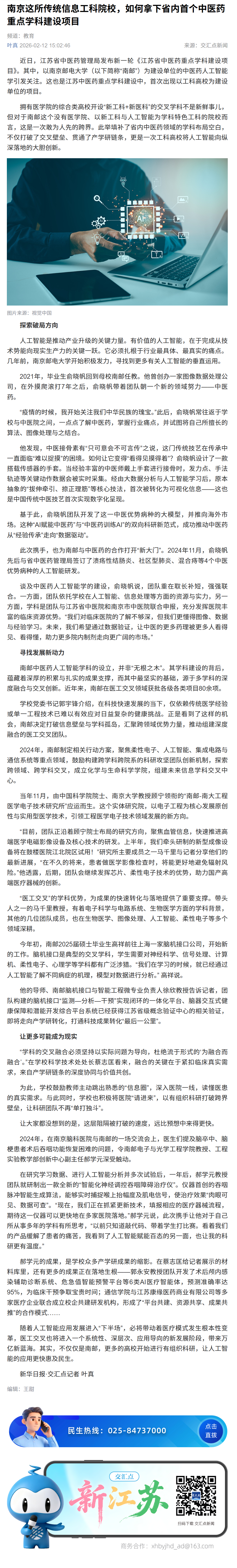 【新华日报客户端】南京这所传统信息工科院校,如何拿下省内首个中医药重点学科建设项目