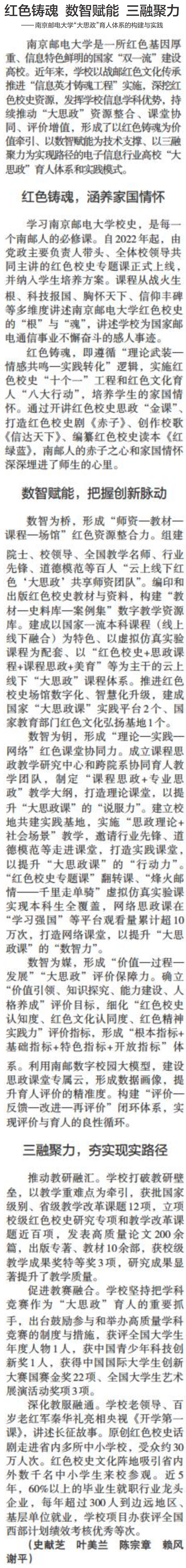 【中国教育报】红色铸魂 数智赋能 三融聚力