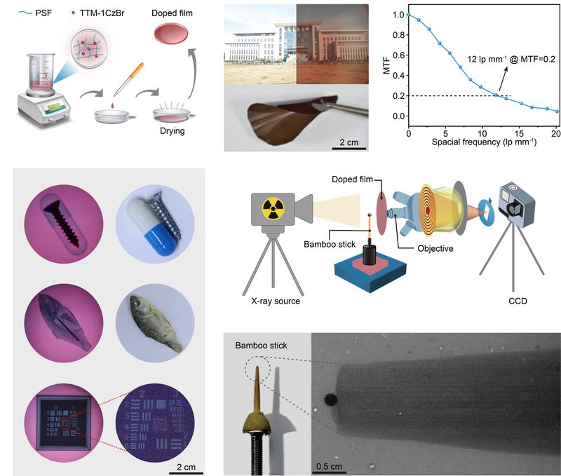 图2 有机自由基闪烁体薄膜及其X射线成像应用