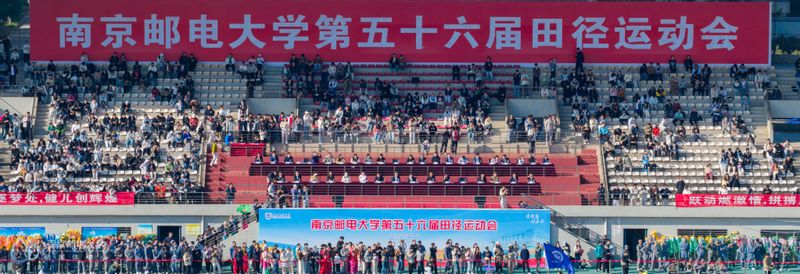 秋高气爽,青春飞扬。10月24日至25日,南京邮电大学第五十六届田径运动会在仙林校区主体育场举行。学校党委书记郭宇锋,校长叶美兰,党委副书记蒋国平,省纪委监委派驻南邮纪检监察组组长、党委常委、纪委书记、二级高级监察官周和林,党委常委、副校长肖甫,党委常委、副校长、校体育运动委员会主任谢平,各职能部门、各学院负责人出席开幕式。