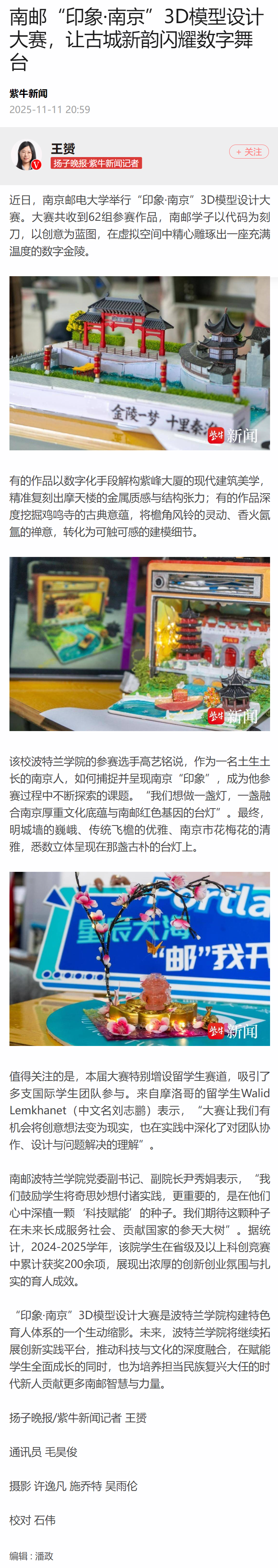 【扬子晚报客户端】南邮“印象·南京”3D模型设计大赛,让古城新韵闪耀数字舞台