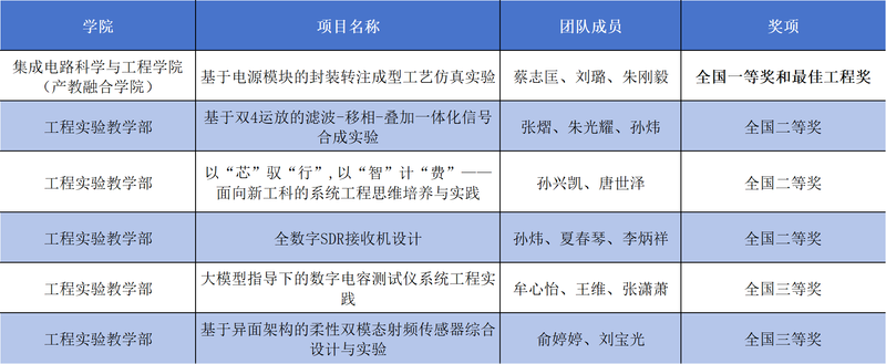 南邮将进一步深耕教学改革、打造一流课程,持续优化课程体系设计,以高质量竞赛成果反哺教学改革创新,深化产-教-研协同育人机制,为国家集成电路产业培育更多复合型、创新型、工程型高素质人才贡献力量。