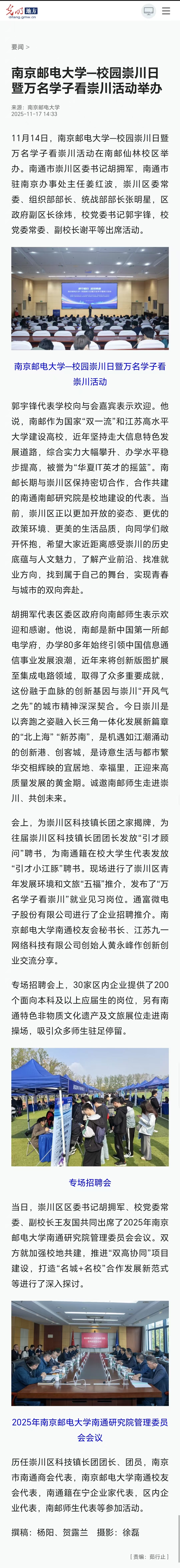 【光明日报客户端】南京邮电大学—校园崇川日暨万名学子看崇川活动举办