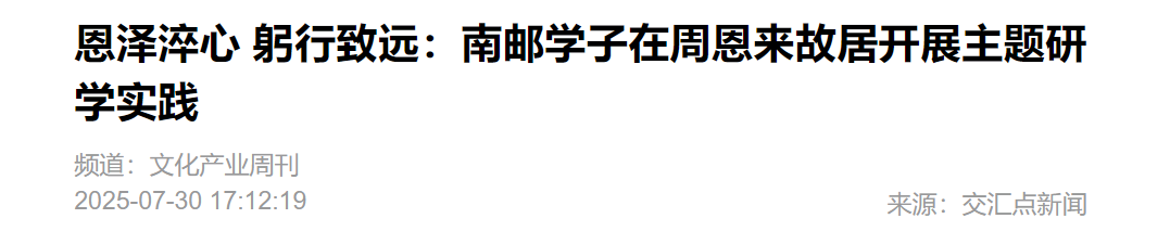 【新华日报客户端】恩泽淬心 躬行致远:南邮学子在周恩来故居开展主题研学实践