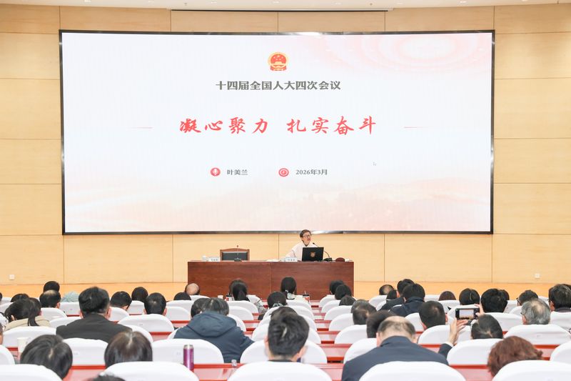 南邮举行学习贯彻2026年全国两会精神报告会 叶美兰以《凝心聚力 扎实奋斗》为题,从“大会概况,习近平总书记在大会期间的重要讲话精神,全国人大常委会、‘一府两院’工作报告的主要内容,关于编纂生态环境法典,制定民族团结进步促进法、国家发展规划法情况,江苏代表团主要活动和审议情况”等五个方面,对十四届全国人大四次会议精神进行了系统深入地传达,重点传达了习近平总书记在参加江苏代表团审议时的重要讲话精神。 叶美兰表示,此次全国两会对于动员全国各族人民凝心聚力贯彻落实党中央决策部署,扎实做好各项工作,确保“十五五” 开好局、起好步,接续推进中国式现代化建设,具有重要意义。习近平总书记在江苏代表团上的重要讲话,不仅为江苏奋进“十五五”把脉定向、指引路径,也为南邮“十五五”战略部署提供了科学指南和重要遵循。她希望全校上下牢记总书记嘱托,在推动科技创新和产业创新融合上打头阵,为教育强国教育强省建设贡献南邮力量。